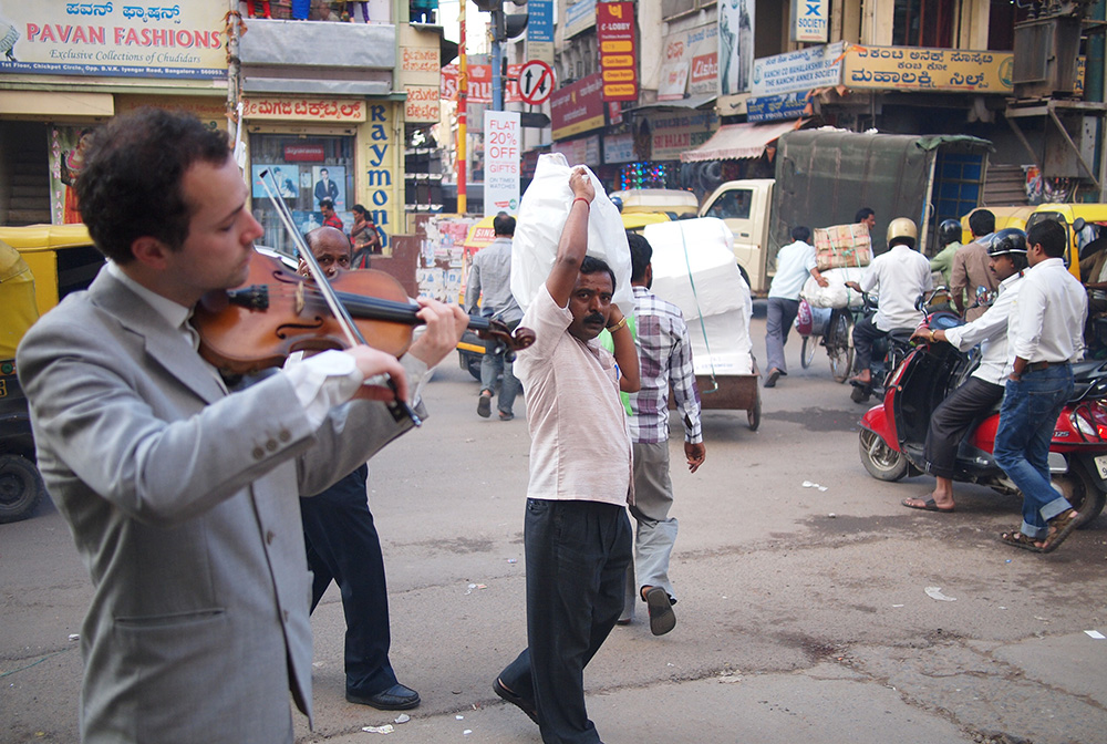 Tristan performing on a street in Bangalore (Photo: Hannah Mackintosh )