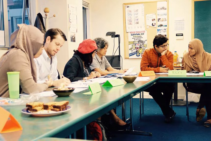 Volunteers teaching students the basics of Bahasa Indonesia at a four-week beginner's course in Wellington