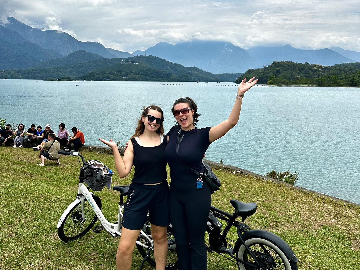 Lauren (left) visiting Sun Moon Lake with Taipei Times intern Bonnie White