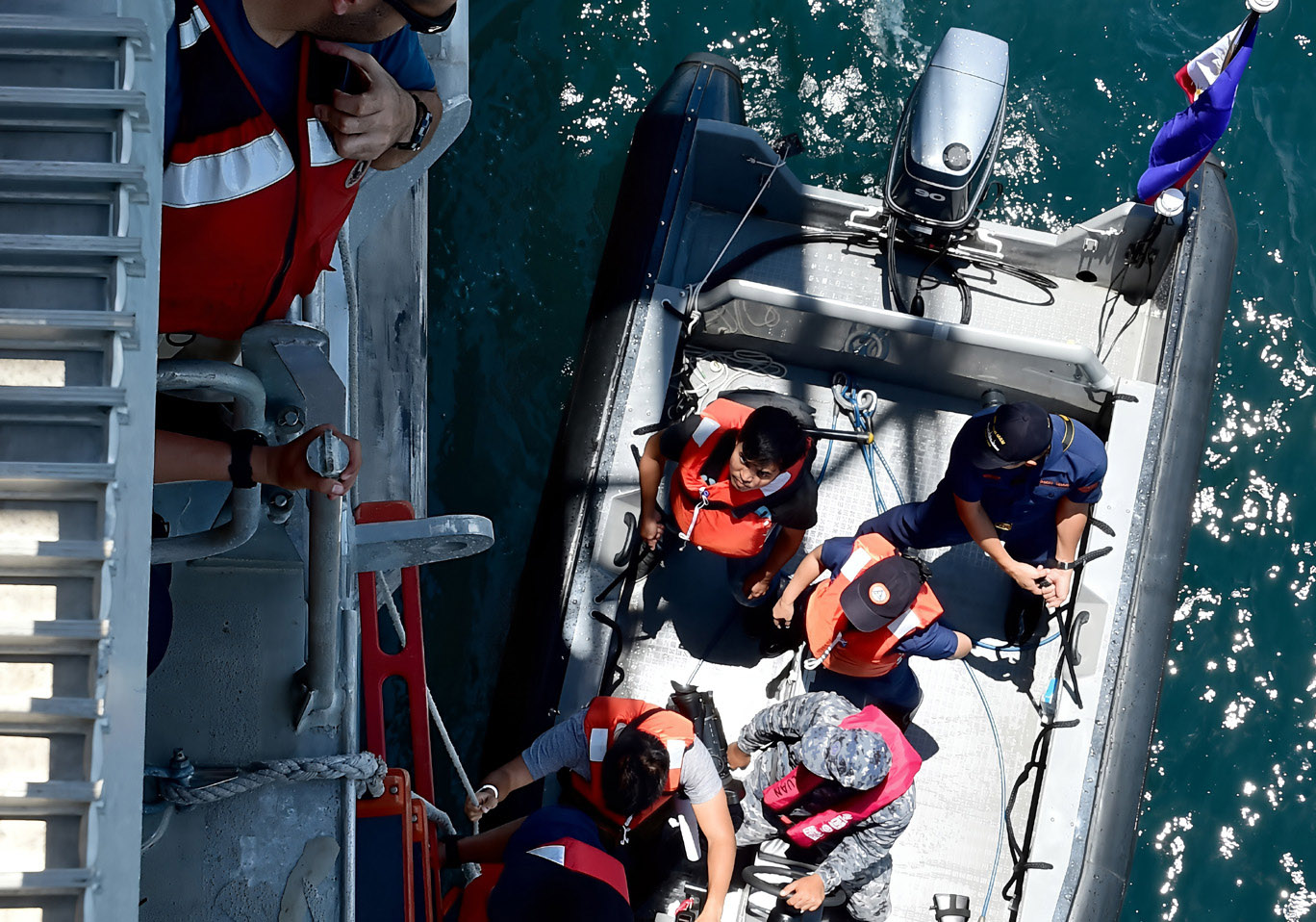 Philippine and US sailors take part in an at-sea boarding exercise for Southeast Asia Cooperation Against Terrorism (SEACAT)