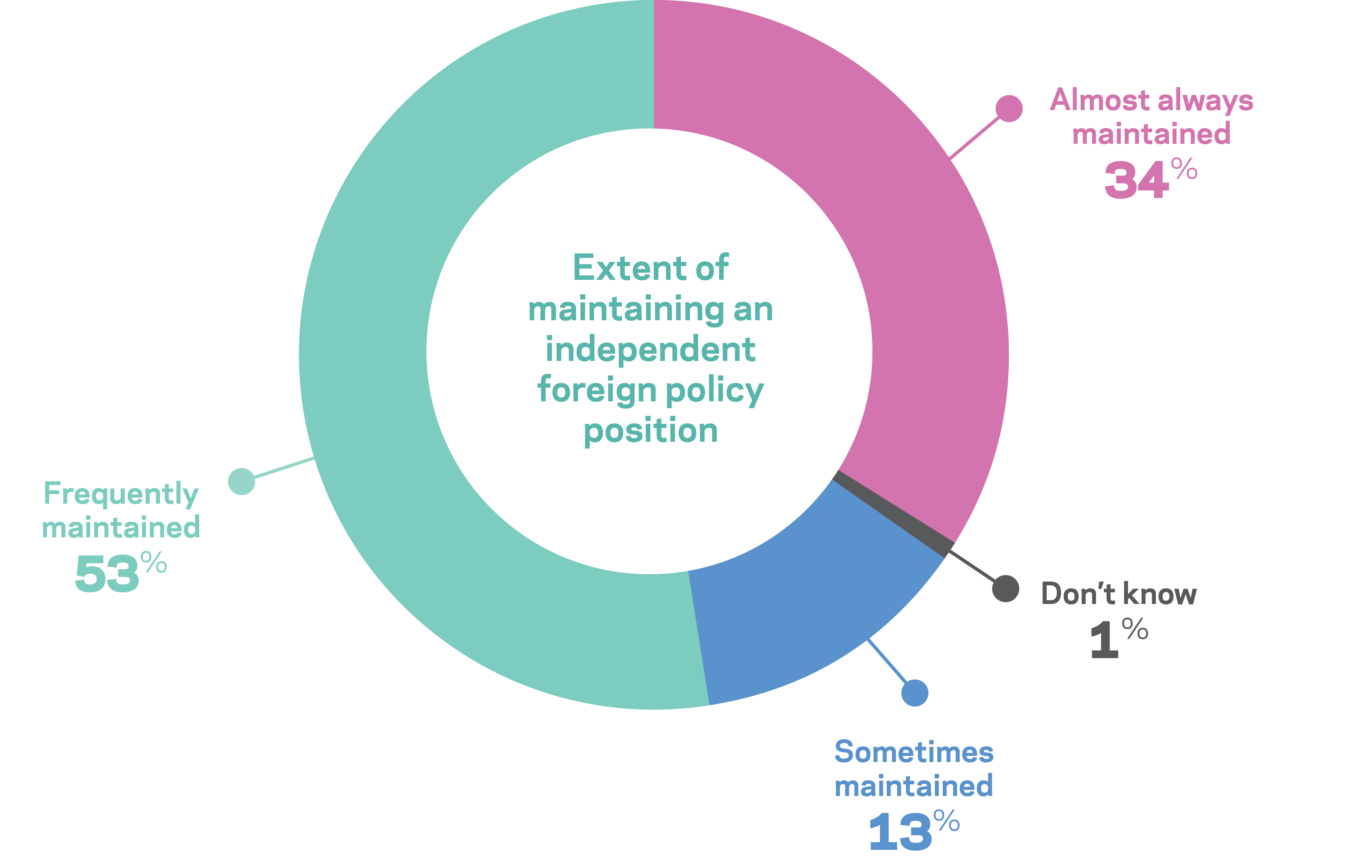 Respondents were asked how often New Zealand maintained its “independent foreign policy” – defined as commitment to a principled, rules-based foreign policy and multilateral organisations – in interactions with their countries.