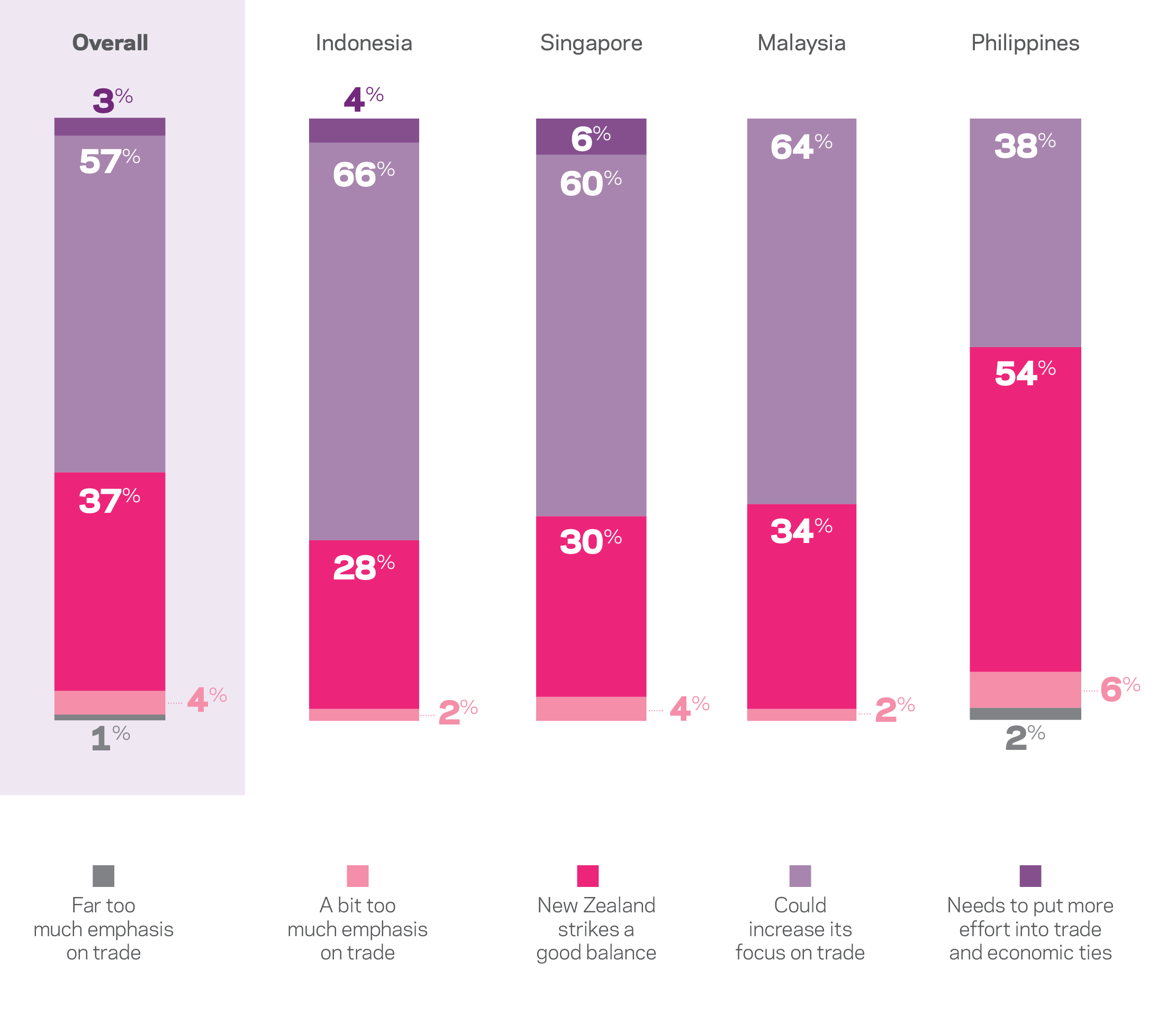 A majority of respondents in Singapore, Malaysia and Indonesia expressed a desire for New Zealand to increase its focus on trade.